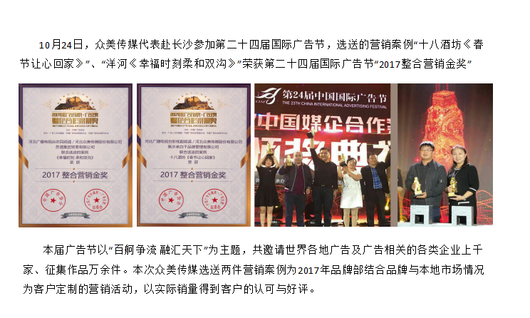眾美傳媒榮獲第二十四屆國際廣告節金獎